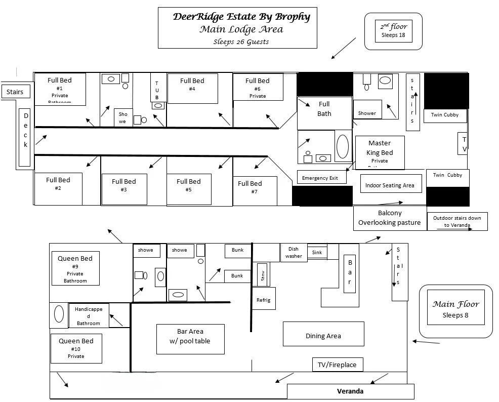 DeerRidge Estate is a 1 dwelling estate with 3 individual units: Main Lodge, 1 Bedroom Unit and 5 Bedroom Unit. This estate consists of 17 bedrooms, 12 bathrooms, 3 kitchens, a large dining area, sports game room, and a large, covered veranda.